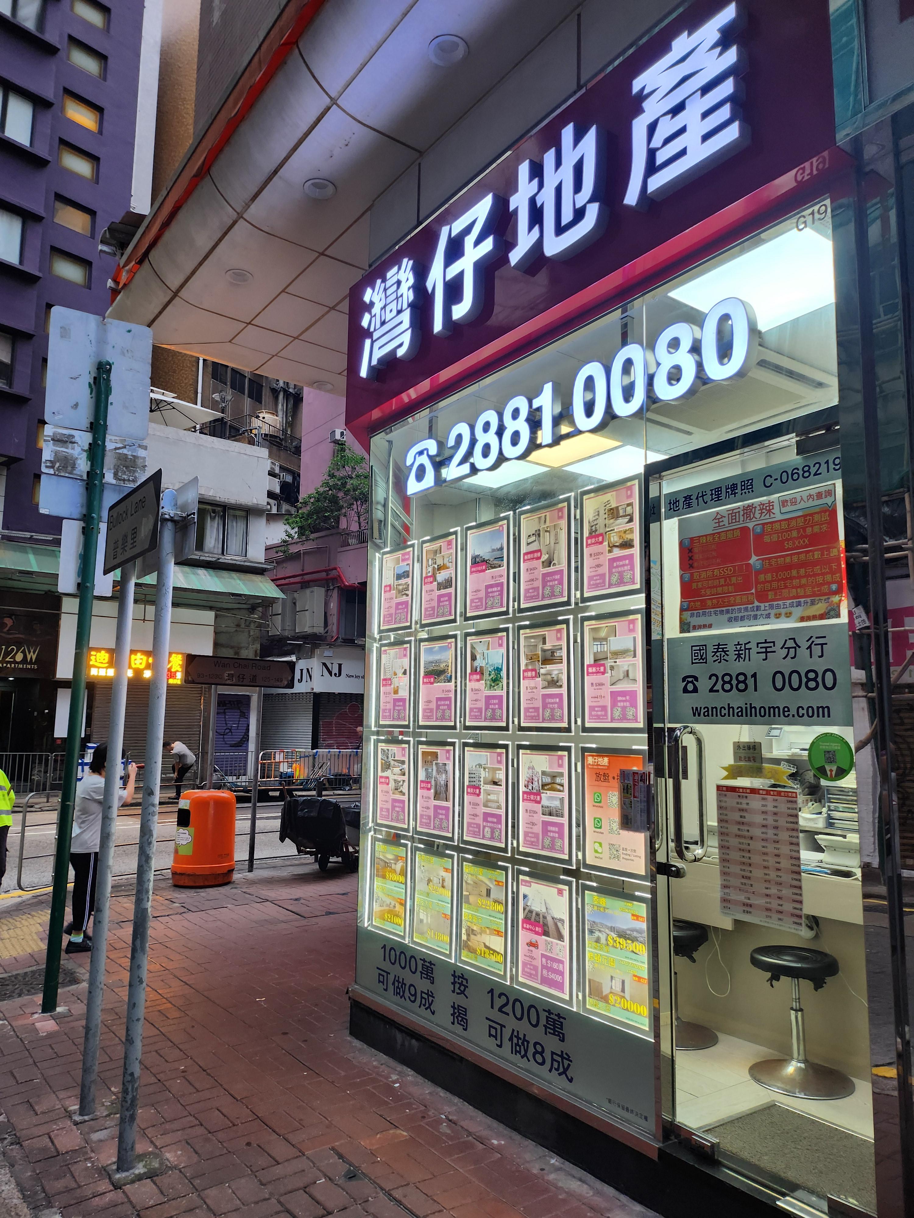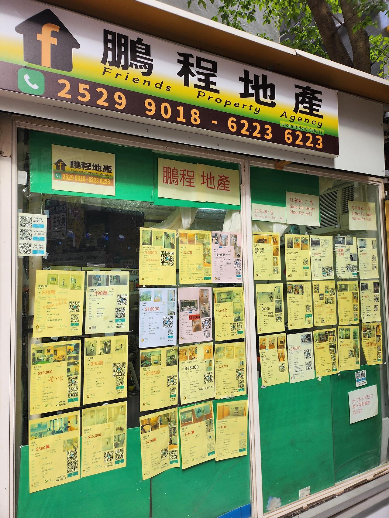 홍콩도 부동산 중개 사무실은 목 좋은 대로변에 있네요.